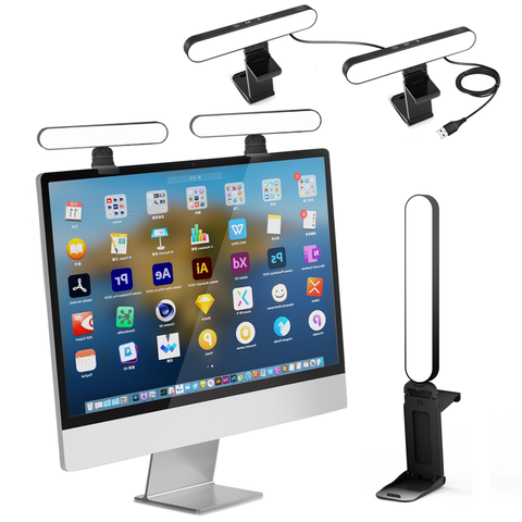 مصباح مكتبي مكتبي بحامل شاشة ، مشبك متعدد الوظائف على 3 قيراط ، سطوع قابل للتعديل للكمبيوتر المحمول المخصص لاجتماع التكبير/التصغير